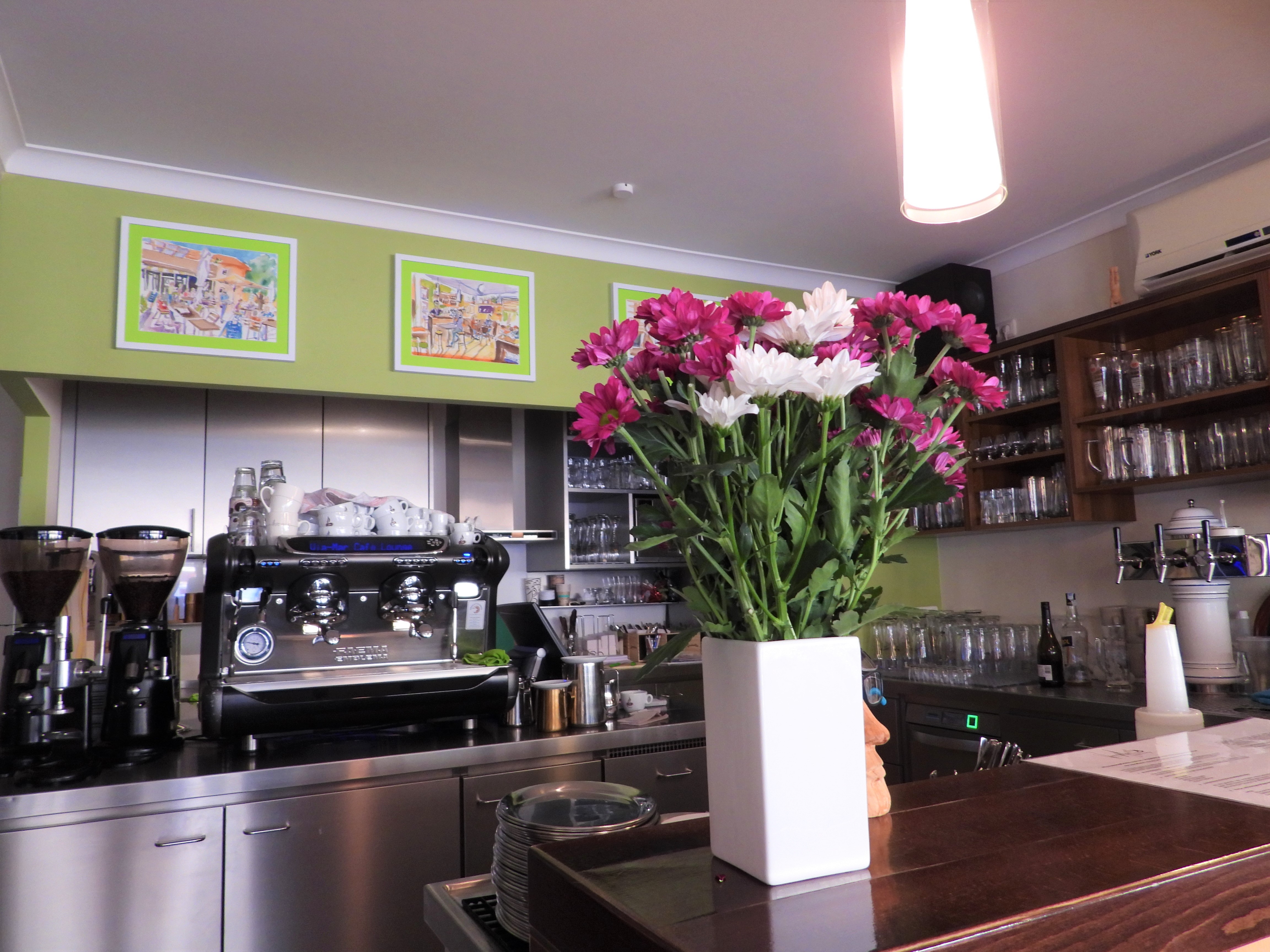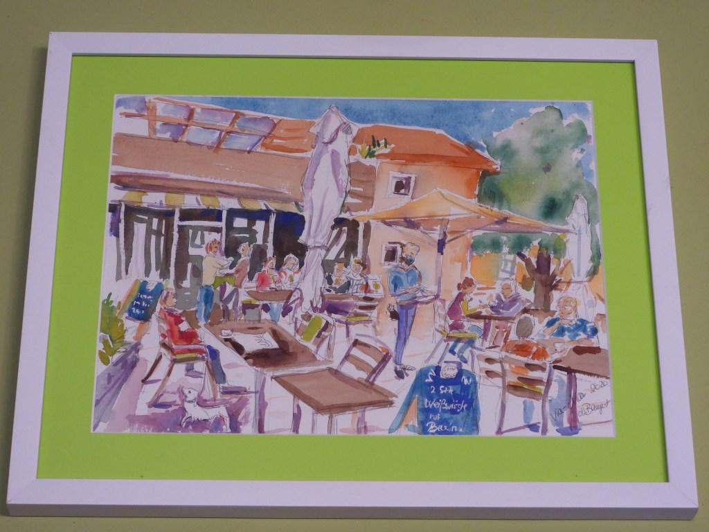 Was für eine Freude! Endlich hat das Viamar wieder offen, die Sonne scheint …uuuund meine Aquarelle hängen im Café! Welch eine Ehre!