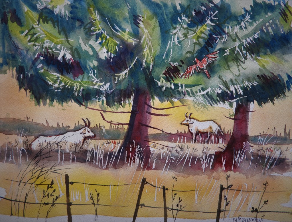 My watercolours in a good local Café! Mes aquarelles dans un café.