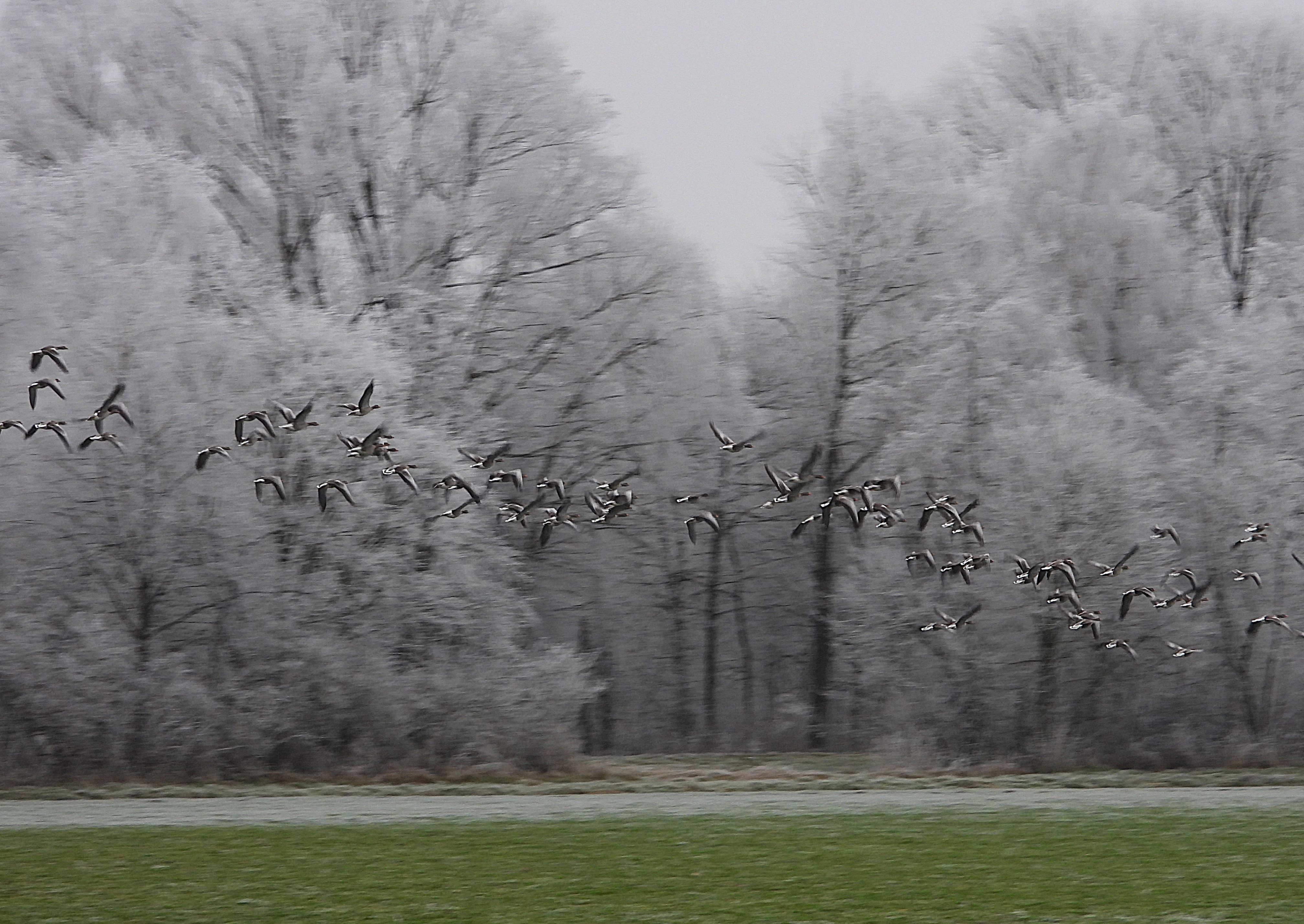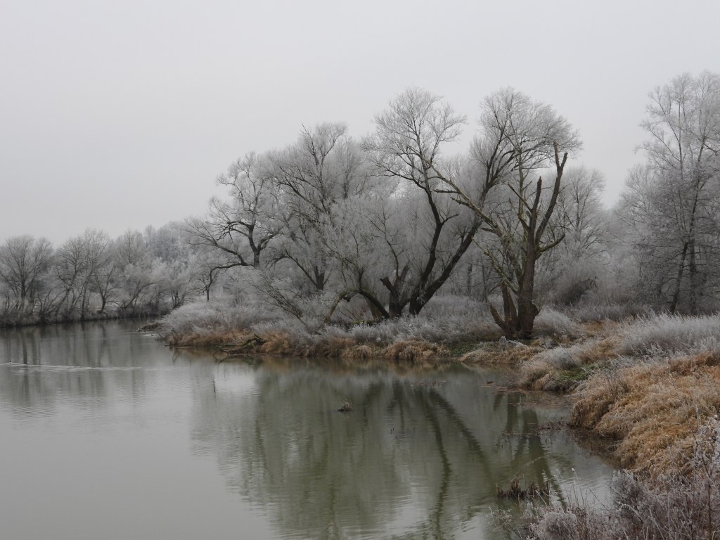 Wie in einem Frühjahr mit gefrorenen Mandel- und Kirschblüten: kalt und verzaubert, so sieht unsere Welt gerade aus. Die Graugänse sagen: „Egal, wir starten schon mal vertrauensvoll ins Neue Jahr!“. Aber die Tauben gurren ganz leise: „Wir kuscheln doch noch ein bisschen“.